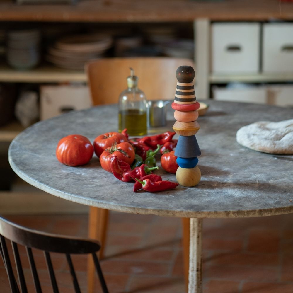No existe una sola forma de construirla. Los niños y niñas pueden observar cómo interactúan las diferentes piezas, descubriendo los conceptos de equilibrio y gravedad.